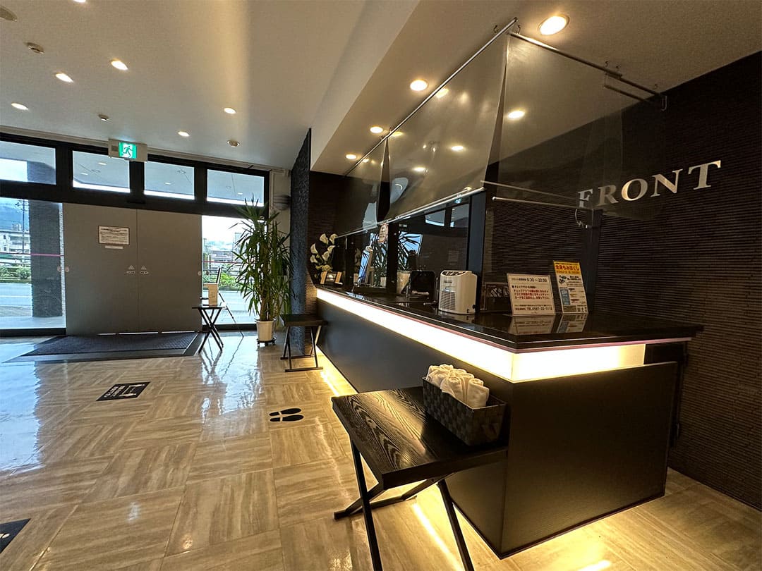 ホテル入り口横には、おもいやり駐車スペースをご用意しております。
